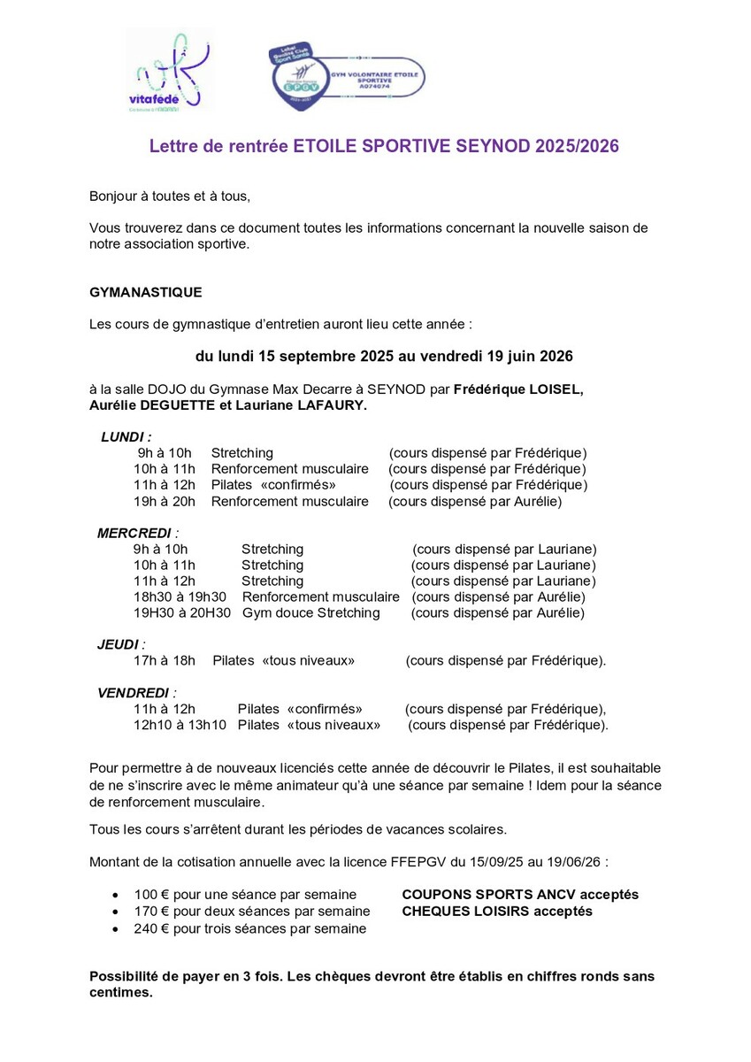 ETOILE SPORTIVE SEYNOD GYMNASTIQUE ADULTES